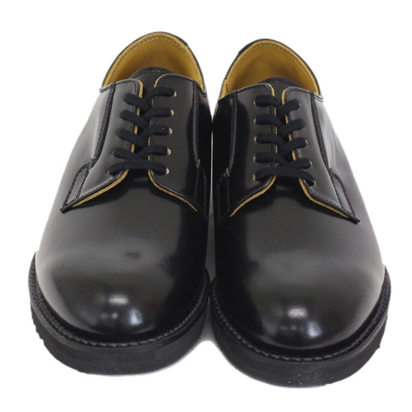 アメリカで郵便配達員のためのサービスシューズとして生まれたポストマンシューズ。日本工場でも30年以上の実績があるロングセラーモデル。肉厚なガラスレザーをなめせる技術を持つタンナーは少ない。何社ものレザーをテストして行き着いたレザーを使用。ダンキャットソールは全方向への滑り止めと衝撃吸収に高い効果を持ち合わせたオリジナルソール。