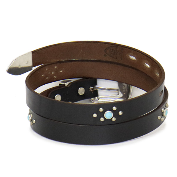 正規取扱店 HTC(Hollywood Trading Company) SD Belt #Western B TQ 1.00インチ ベルト ブラックレザーxシルバースタッズxターコイズ